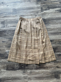 Item:1990's Burberry Check Long Pleated Skirt Color: Nova Check Size : N/A Brand : Burberry Made in: Italy Composition: Wool Description : 1990's Burberry Check Long Pleated Skirt, Features a pleated Construction, with an elastic waist band and Zipper Closure, Very Light virgin wool Fabric, fully lined Condition: 6.5/10 - Multiple Stains throughout, please see pictures Dm for Questions!