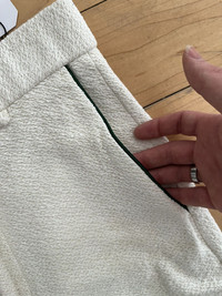 Item: Casablanca Piped Tennis Trousers Color: White Size : 46 Brand : Casablanca Made in: Slovenia Composition: 71%Viscose,21%Virgin Wool,8%Polyamid Description : Casablanca Piped Tennis Trousers, features a zipper fly, 2 front pockets and belt loops Condition: 10/10 Retail: 1420 Dm for Questions!