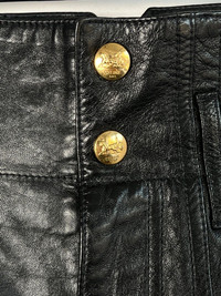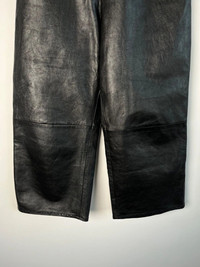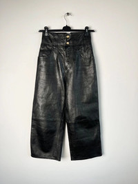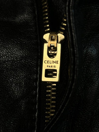 Item: Celine Hedi Era Wide Leg Leather Pants Color: Black Size : 28 Brand : Leather Made in: Italy Composition: Goat Skin, Silk Lining Description : Celine Hedi Era Wide Leg Leather Pants, High waisted, Jumbo Legs, 5 pockets construction, 2 rounded Large Pockets at Back, Golden Celine Buttons at front, Branded Zipper at Fly, Partial Silk Lining Condition: 9/10 - Very Minimal Wear Dm for Questions!