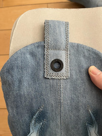 Item: Diesel Denim Cowboy Boots Color: Blue Size : 5 Brand : Diesel Made in: Bosnia and Herzegovina Composition: Denim and Leather Description : Diesel Denim Cowboy Boots, features a faded denim upper with applique details and 2 side pullers, cuban style heel, pointy toes, comes with box Condition: 10/10 Retail: 525 Dm for Questions!