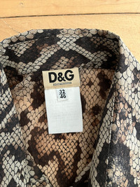 Item: Dolce & Gabbana mesh Python Button up Shirt Color: Python Size : 46 Brand : Dolce & Gabbana Made in: Italy Composition: ? (tag is too faded) Description : Button Up Shirt by D&G from the early 2000's, Features a button closure and regular shirt collar Condition: 9/10 Retail: ? Dm for Questions!
