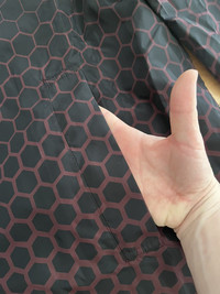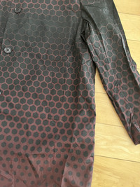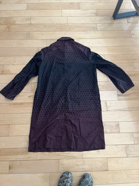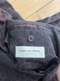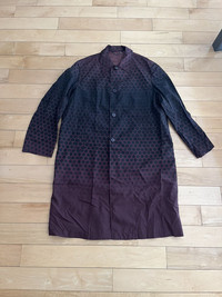 Item: Dries Van Noten Long Nylon Coat Color: Burgundy Size : XL Brand : Dries Van Noten Made in: Romania Composition: 100% Polyamide Description : Long Nylon Coat from Dries Van Noten. Features a button closure, collar, and a nice Gradient honeycomb pattern Condition: 10/10 Retail: 1150 Dm for Questions!