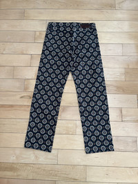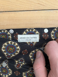 Item: Dries Van Noten Panthero Pants Color: Black Size : 30 Brand : Dries Van Noten Made in: Composition: 100% Cotton Description : Pants from Dries Van Noten made from denim with a printed pattern throughout. Five pocket style with button fly and closure. Belt loops at the waist. Branded metal rivets on the front pockets. Tonal top stitching throughout and a branded leather label on the back. Condition: 10/10 Retail: 985 Dm for Questions!