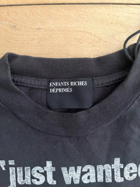 Item: Enfants Riches Deprimes Teen Just Wanted Love LS Tee Color: Black Size : XS Brand : Enfants Riches Deprimes Made in: USA Composition: 100% Cotton Description : Heavyweight 10 oz cotton jersey T-shirt. · Rib-knit crewneck and cuffs · Text and logo graphic printed at front and back · Rolled edge at hem · Dropped shoulders · Logo printed at back SSENSE Receipt Available Condition: 10/10 Retail: 1220 Dm for Questions!