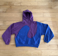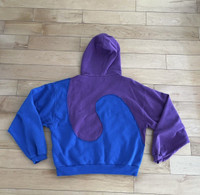 Item: ERL Swirl Hoodie Color: Purple/Blue Size : XS Brand : ERL Made in: Turkey. Composition: 80% Cotton, 20% Polyester Description : SIgnature Swirl hoodie by ERL, French terry fabric, Paneled construction, Rib knit hem and cuffs, Dropped shoulders, Dolman sleeves Light stain at back waistband Condition: 9/10 Retail: 420 Dm for Questions!