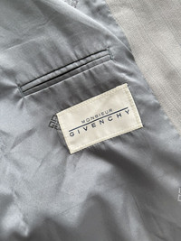 Item:Givenchy Double Breasted Blazer Color: Grey Size : Unknown Length: 77 cm (approx) / 30.3 inch (approx) Garment Width: 57 cm (approx) / 22.4 inch (approx) Shoulder Width: 47 cm (approx) / 18.5 inch (approx) Sleeve Length: 67 cm (approx) / 26.3 inch (approx) Brand : Givenchy Made in: Italy Composition: Wool Description : Givenchy Double Breasted Blazer, features a Double breasted button Closure with retention strip, 3 pockets at front, Peak lapel Collar, Shoulder Pads, Branded Buttons, Monogram partial lining, 3 Pockets inside and buttons at cuffs Condition: 8/10 - Few Small stains throughout, overall pretty good condition Dm for Questions!