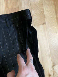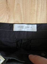 Item:Golden Goose Silver Pinstripe Velvet Strip Dress Pants Color: Black Size : 48 Brand : Golden Goose Made in: Italy Composition: 55% Wool, 28% Viscose, 17% polyamide Description : Golden Goose Silver Pinstripe Velvet Strip Dress Pants, features side pockets, 2 back pockets, a silver pinstripe pattern and a velvet strip on the side, Straight cut Condition: 10/10 - New with tags Dm for Questions!