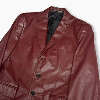 Item:Jean Paul Gaultier Burgundy Leather Jacket Color: Bordeau Size : 48 Brand : Jean Paul Gaultier Made in: China Composition: Sheep Leather Description : Jean Paul Gaultier Burgundy Leather Jacket, 3 button closure, 2 pockets at front full lining, Condition: 8/10 - Wear consistant with age, but overall great condition Dm for Questions!