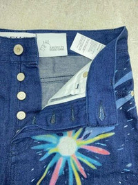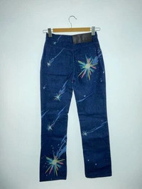Item:Loewe x Studio Ghibli "Magical Sky" Jeans Color: Indigo Size : Tagged 32 Brand : Loewe Made in: Italy Composition: 100% Cotton Description : Loewe x Studio Ghibli "Magical Sky" Jeans, features an allover print of the final scene of Howl's moving castle, button fly, 5 pockets construction, straight cut Condition: 9/10 Dm for Questions!