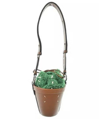 Item:Maison Margiela Bushy Flower pot Bucket bag Color: Brown/Green Size : OS Brand : Maison Margiela Made in: Italy Composition: Leather Description : Maison Margiela Bushy Flower pot Bucket bag, very unique bag, 4 stitch at front, ajustable strap, leather drawsting at closure, card slot inside Condition: 9/10 Dm for Questions!