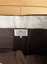 Item: Maison Margiela Line 4 Pleated Trousers Color: Brown Size : 42 Brand : Maison Margiela Made in: Italy Composition: 100% Wool Description : Trousers from the autumn-winter collection will become a universal solution in the basic wardrobe thanks to the calm brown color and laconic straight cut. The model with small turn-ups was sewn from soft wool twill, which, due to tightly twisted threads, almost does not wrinkle. The back of the product is decorated with large stitches, iconic for the brand founded by Martin Margiela. Condition: 10/10 Retail: 1350 Dm for Questions!