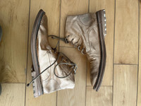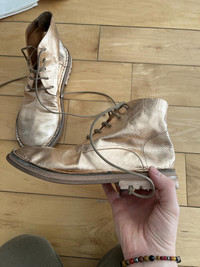 Item: Marsell Metallic Leather Lace Up Boots Color: Metallic Size : 37 Brand : Marsell Made in: Italy Composition: Leather Description : Marsell Metallic Leather Lace Up Boots, features a crumpled and worn look metallic leather and laceup closure, comes with box Condition: 10/10 Retail: 1125 Dm for Questions!
