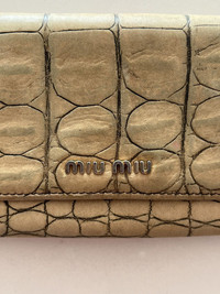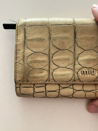 Item: 1994 Miu Miu Long Crocodile Pattern Wallet Color: Sand Size : UNI Brand : Miu Miu Made in: Italy Composition: Lambskin Description : Miu Miu Long Wallet in a croc embossed Lambskin Leather, Crazy Smooth Leather, Has obvious wear do to it's age but decent condition, Features 12 card slots,A zip Pocket and a huge Open Pocket. Condition: 7/10 Retail: Unknown Dm for Questions!
