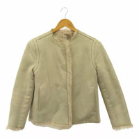 Item:Miu Miu Reversible Fur and Leather Jacket Color: Ivory Size : 36 Brand : Miu Miu Made in: Italy Composition: Sheep Fur, Leather Description : Miu Miu Reversible Fur and Leather Jacket, features 2 pockets, a hook closure, and is crazy cozy, Condition: 9/10 - light scuff marks on leather, not noticeable Dm for Questions!