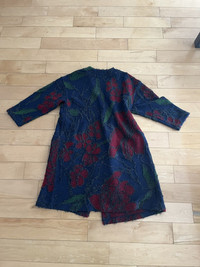 Item: Engineered Garment FW19 Runway Embroidered Belted Jacket Color: Navy Size : 0 Brand : Engineered Garment Made in: USA Composition: Description : Engineered Garment FW19 Runway Embroidered Belted Jacket, this is the navy Itiration of the runway piece, features 2 ways to tie closure and cool floral pattern, 2 pockets, unlined Condition: 10/10 Retail: Unknown Dm for Questions!
