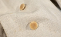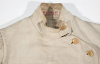 Item:1900's French Fencing Jacket Color: Ivory Size : XS Brand : N/A Made in: France Composition: Linen Description : 1900's French Fencing Jacket, Corozo Button closure, button at neck, beautiful wear, especially for a 120 years old jacket, a true grail for all vintage fans Condition: 8/10 Dm for Questions!