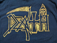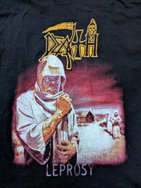 Item:2000's Death "Leprosy" T-shirt Color: Black Size : XL Brand : Promo Stars Made in: Unknown Composition: Unknown Description : 2000's Death "Leprosy" T-shirt, fading and staining throughout, leprosy print in the front, death logo at the back, overall good condition Condition: 8/10 Dm for Questions!