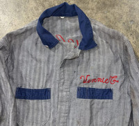 Vintage - Trashed 1940's Mechanic Chainstitch Herringbone Coverall