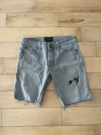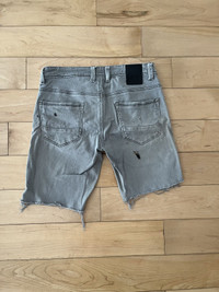 Item: Trashed Short Color: Grey Size : 30 Brand : Urban Heritage Made in: China Composition: 98% Cotton 2% Spandex Description : Trashed 5 Pockets short with crazy wear, thats the short I would actually wear when I was still working in Construction, got some rip, a slight Sunfade, roofing Pitch stain, crazy distressing, Condition: N/A Dm for Questions!