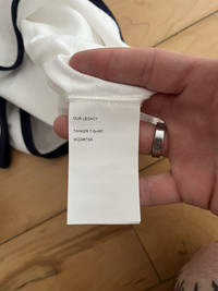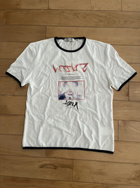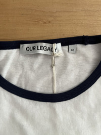 Item: Our Legacy Tanker T-shirt Color: White Size : 40 Brand : Our Legacy Made in: Portugal Composition: 100% Cotton Description : Cotton jersey T-shirt. · Rib knit crewneck, hem, and cuffs · Text and graphic printed at front · Dropped shoulders Supplier color: Snow shigatsu print Condition: 10/10 Retail: 210 Dm for Questions!