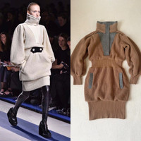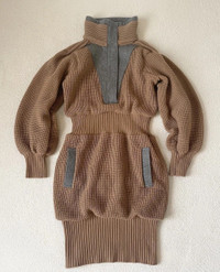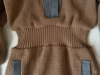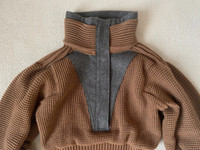 Item:Sacai Waffle Knit Sweater Tunic FW15 Color: Brown/Grey Size : 2 Brand : Sacai Made in: Japan Composition: Wool Description : Sacai Waffle Knit Sweater Tunic FW15, features a Heavy Knitted Fabric, 2 pockets at front, High Neck with Zipper and button fastening, mesh lining Condition: 9/10 - No visible signs of wear Dm for Questions!