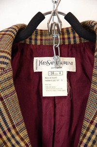 FW98 Yves Saint Laurent Wool Check Cropped Blazer