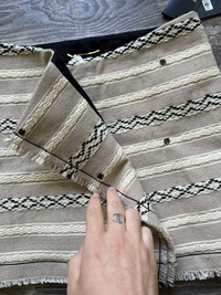 Item:Saint Laurent Woven Wrap Mini Skirt Color: Tan Size : 34 Brand : Saint Laurent Paris Made in: France Composition: 85% Wool, 15% Cotton Description : Saint Laurent Woven Wrap Mini Skirt, Snap Button Closure, one button inside for easier wrap, wide threads detailing throughout Condition: 10/10 - New with Tags Dm for Questions!