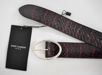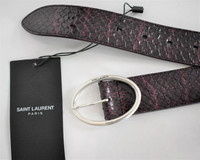 Item:Saint Laurent Paris Elaphe Snakeskin Belt Color: Burgundy Size : 80 Brand : Saint Laurent Paris Made in: Italy Composition: Elaphe Skin Description : Saint Laurent Paris Elaphe Snakeskin Belt, features an Oval Buckle with engraves Saint Laurent Logo, Length to closest hole is 29.75 inches; to furthest hole - 33.75 inches. Belt width: approx. 1.25 inches.comes with original dust bag Condition: 10/10 - New with tags Dm for Questions!