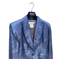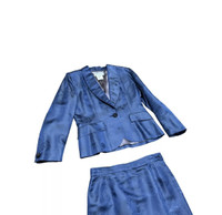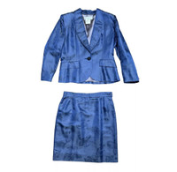 Item: Yves Saint Laurent FW98 Brocade Floral Skirt Suit Color: Blue Size : 44 Brand : Yves Saint Laurent Made in: France Composition: 100% Acetate Description : Yves Saint Laurent FW98 Brocade Floral Skirt Suit, features 2 pieces in a brocade fabric with subtle floral pattern, the blazer has a one button closure, is lined and has shoulder pads, the skirt has a size zip closure and a button as well as a hand sewn slit at back Waist measurement is for the skirt*** Condition: 9/10 Dm for Questions!