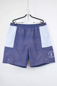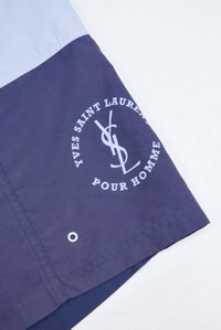 Item: Yves Saint Laurent Logo Swim Trunks Color: Blue Size : L Brand : Yves Saint Laurent Made in: Unknown Composition: 100% Polyester Description : Yves Saint Laurent Logo Swim Trunks, features a mesh lining, 2 side pockets, and Iconic logo on leg. Condition: 7.5/10 - Slight discoloration throughout. Dm for Questions!