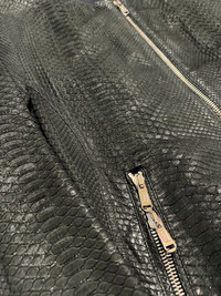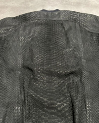 Item:Yves Saint Laurent Python Skin Teddy Jacket Color: Black Size : 52 (Fits smaller) Brand : Yves Saint Laurent Made in: Italy Composition: Python Skin Details: 100% Silk Lining: 100% Cupro Description : 2010s Yves Saint Laurent Black Snakeskin Python Avant-Garde Leather JacketThe 2010s Yves Saint Laurent Black Snakeskin Python Avant-Garde Leather Jacket is a bold and striking piece that exemplifies the brand’s edgy sophistication and meticulous craftsmanship. Made from premium python snakeskin leather in a deep black tone, the jacket boasts a luxurious texture and unique pattern that reflects Yves Saint Laurent’s daring aesthetic. Its avant-garde design features sharp tailoring, a sleek silhouette, elevating it into a true high-fashion statement. Such a fantastic luxurious jacket, the texture of the leather is soft.Still in a great condition, the jacket presents some very minor signs of used.Marked as size 52, it fits great for a size Medium Condition: 8/10 - Light wear Throughout Dm for Questions!