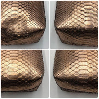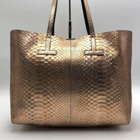 Item:Tom Ford Large Bronze Python Skin Tote Bag Color: Bronze Size : OS Brand : Tom Ford Made in: Italy Composition: Python Skin Description : Tom Ford Large Bronze Python Skin Tote Bag features a magnetic snap closure, zip pocket in side and "T" Logo Handle, Condition: 7/10 - Corners show wear, overall good condition tho Dm for Questions!