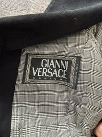 Item:Vintage Versace 4 buttons Blazer Color: Black Size : 40 Brand : Gianni Versace Made in: Italy Composition: Cotton Description : Vintage Versace 3 buttons Blazer, Features a single breasted 4 buttons closure, Versace Medusa Head Buttons, 4 pockets at front, shoulder pads, Button at cuffs, Full Lining at interior and Velvet collar Condition: 6/10 - Fading at collar, the lining inside is ripped at the underarm Dm for Questions!