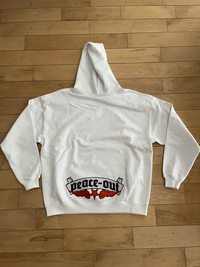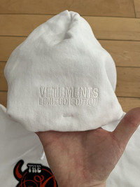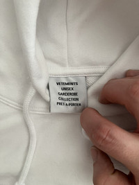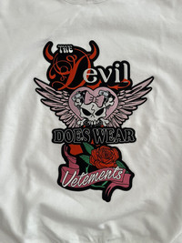 Item: Vetements Devil Wears Vetements Hoodie Color: White Size : S Brand : Vetements Made in: Portugal Composition: Body: 80% cotton, 20% elastane. Trim: 74% cotton, 24% polyester, 2% elastane. Description : Long sleeve stretch French terry hoodie in White featuring embroidered Patch at front and back hem Condition: 10/10 Retail: 1595 Dm for Questions!