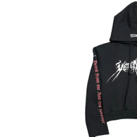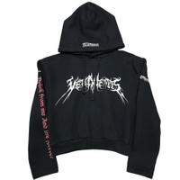 Item:Vetements Total Fucking Darkness Cropped Hoodie Color: Black Size : XS Brand : Vetements Made in: Portugal Composition: 80% Cotton, 20% Polyester Description : This pullover hoodie from VETEMENTS’ 2016 Autumn/Winter collection is one of Demna Gvasalia’s early standout designs. It features a black metal-style VETEMENTS logo on the chest, gothic lettering on the sleeve reading “Drink from me And live forever,” and a bold pentagram “TOTAL F**KING DARKNESS” print on the back. The cropped silhouette adds a unique edge, embodying the brand’s avant-garde aesthetic. This is the Women version of this hoodie and is tighter and shorter Condition: 8/10 - Light fade, light wear but overall great condition Dm for Questions!
