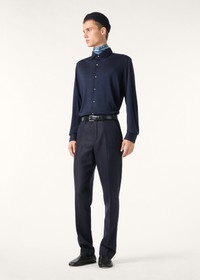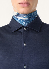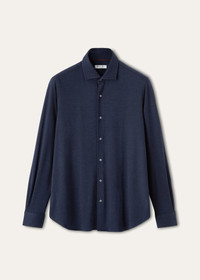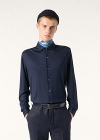 Flowing shirt made from extremely fine, compact, cashmere-and-silk jersey that is pleasant against the skin. This form-fitting style has a clean-lined, refined allure. Product details Small open collar Two pleats along the back Two pleats at the cuffs Composition: 70% Cashmere, 30% Silk Model wears an IT L Model measures: height 6′ 2″/ 189cm, bust 33.5″/ 85cm, waist 26.4″/ 67cm, hips 34.6″/ 88cm. Made in Italy Product code: FAM9540