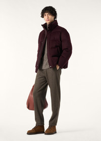 Traversing the realms of tradition and innovation, we arrive at the Giulio puffer jacket, a design that embodies the ethos of Loro Piana. Crafted from insulating cashmere treated with Storm System® protection, this quilted piece wraps you in luxurious warmth with an oversized silhouette featuring an upright collar, horizontal quilting and an adjustable drawstring hem. Ideal for cold days in the city or on the slopes. Product details Zip fastening with flap that fastens with press studs Upright collar that fastens with visible press stud Wind-guard slightly slanted welt pockets Cuffs with knitted inner lining Drawstring at base with inner eyelet at the side Horizontal single welt wind-guard pockets inside Composition: 100% Cashmere Model wears an IT M Model measures: height 6′ 2″/ 189cm, bust 35.4″/ 90cm, waist 28.0″/ 71cm, hips 35.0″/ 89cm, shoes 44. Made in Italy Product code: FAO8389