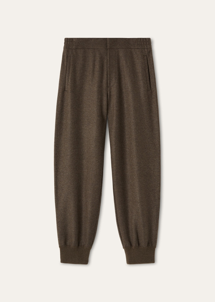 Crafted from Jersey Novalis, a silky-soft cashmere blend, the Rio Bodro pants are lightweight yet luxuriously cozy. The oversized silhouette features a fabric waistband and ribbed cuffs for a hint of sportiness. A zip fastening and discreet horn buttons complete the design with understated function. Product details Straight cut Ribbed woven cuffs Welt pockets on the front and back Zip front fastening Horn buttons Oversized fit Composition: 96% Cashmere, 4% Microfiber Model wears an IT M Model measures: height 6′ 2″/ 188cm, bust 35.8″/ 91cm, waist 28.0″/ 71cm, hips 35.8″/ 91cm, shoes 16.9″/ 43cm. Made in Italy Product code: FAP7555