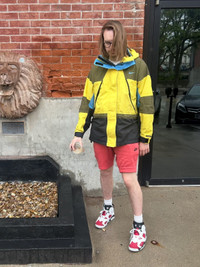 increasingly rare, extremly sought after bright yellow colorway tagged U.S. Women’s M Medium (8-10) fits rather unisex, please refer to measurements worn and washed discoloration, marking, fraying, hairs trapped in velcro, peeling 3M reflective on zipper placket