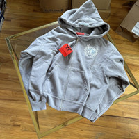 Aris Tatalovich × murd333r.fm - PEACEMAKER BOXY CROPPED HEAVYWEiGHT ZiP UP HOODiE GREY
