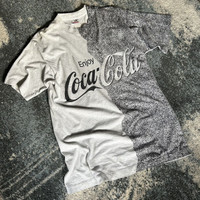 1992 ASYMMETRiC COCA-COLA ALLOVER PRiNT TELEViSiON STATiC SiNGLE STiTCH worn and washed, condition as pictured discolorations, holes at back left hand side HEAVYWEiGHT FRUiT OF THE LOOM TEE Made in U.S.A. YiN-YANG BLACK & WHiTE COOKiES AND CREAM COMPOSiTiON NOTEBOOK MTV HEATHER GREY ASH NEW COKE CATCH THE WAVE MAX HEADROOM CYBERPUNK