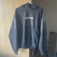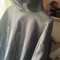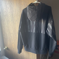 very gently worn and washed peep the inside out pics. top half is a tight, woven cotton twill canvas, like chinos or khakis. the bottom half is a soft cozy loopback terrycloth sweatshirt. 3 piece hood dual 750 mL pocket holsters