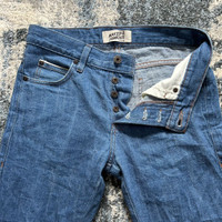 worn and washed. lots of life left. Naked and Famous 9oz antique selvedge denim. Super Skinny Guy fit. 30 waist. Lightweight and perfect for the summer. Original listing price $148.