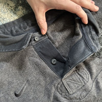 worn and washed, hole on the right hand side near the side seam, lots of piling, strong smell of laundry detergent