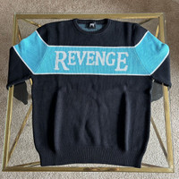 Revenge - COLOR BLOCK SPORT KNiT SWEATER POWDER BLUE BANNER LOGO