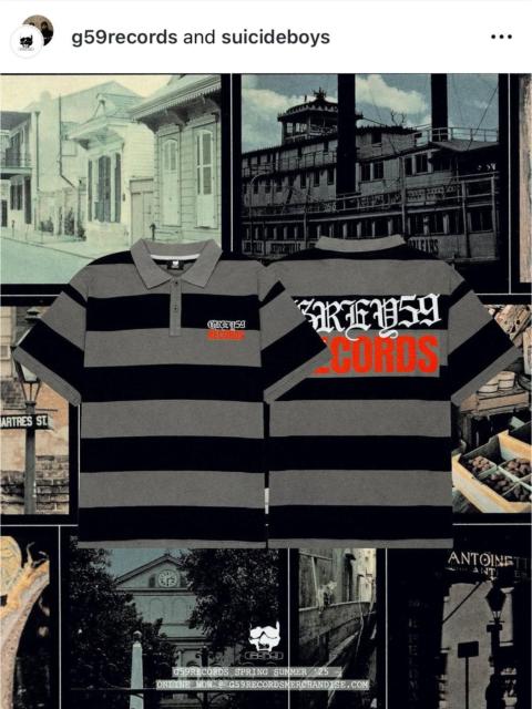 Fuck The Population × G59 Records - STRiPED G*59 XEROX POLO BLACK GREY FiVE NiNE HEAVYWEiGHT