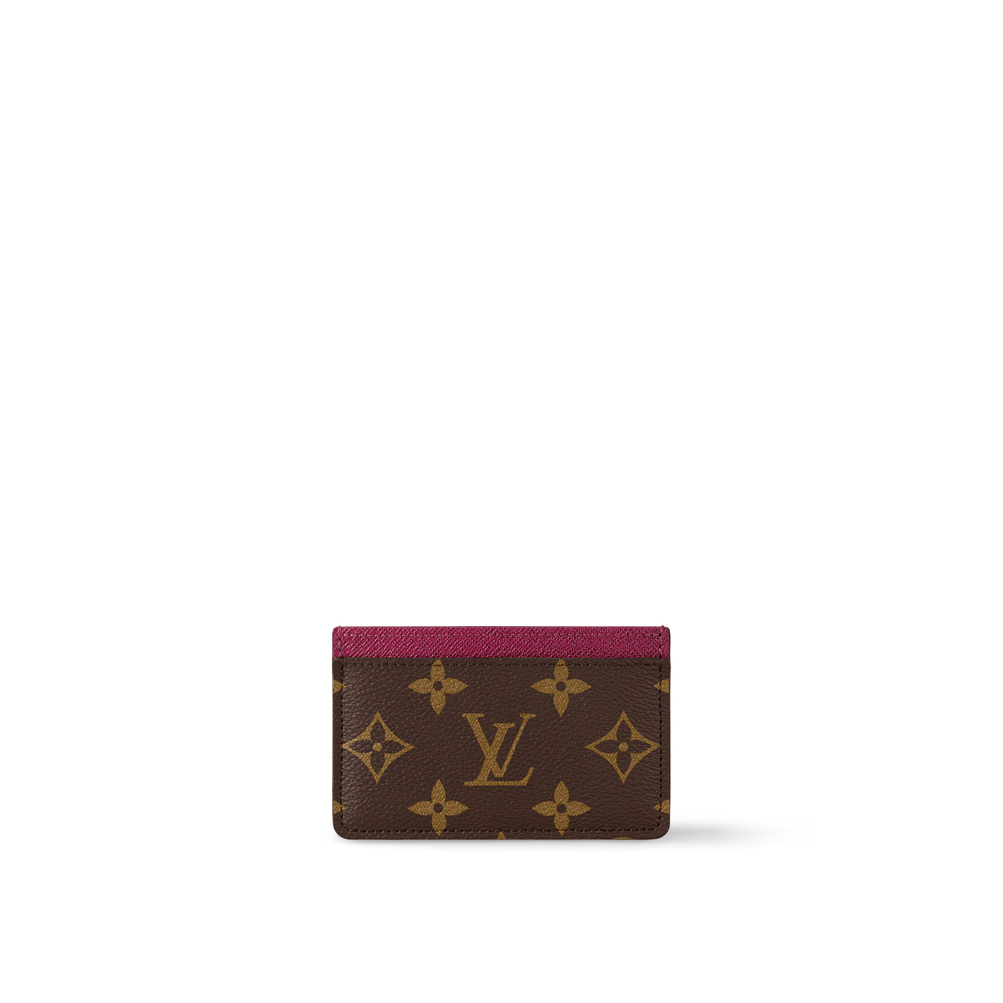 Crafted from Louis Vuitton's iconic Monogram canvas, the Card Holder is a smart, simple accessory that is ideal for active lifestyles. Notable for its slim design, it contains three card slots: a large one in the center and two on either side. Its grained-leather lining adds a touch of refinement. Detailed Features - Fuchsia Pink - Monogram coated canvas - Grained cowhide-leather lining - Large inside card slot - 2 outside card slots - The reference is either made in France, Spain, Italy or in the US. Length: 4.3 inches Height: 2.8 inches