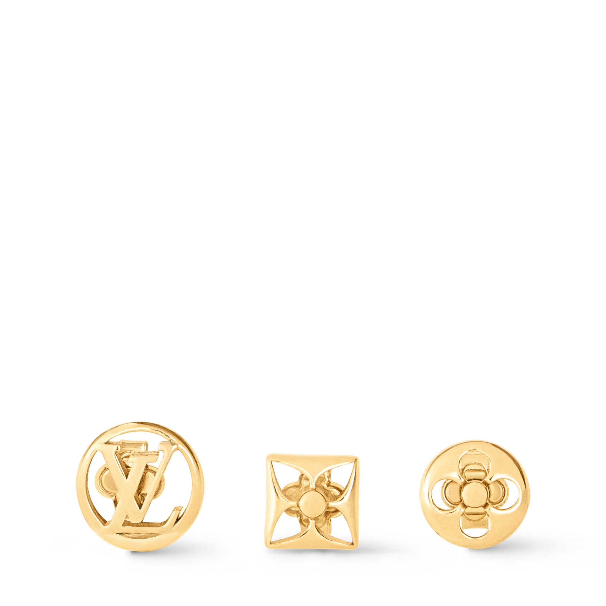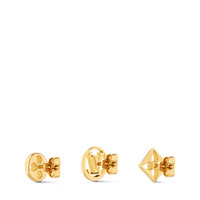 This Crazy in Lock earrings set features three different pieces that can all be worn in one ear, or as a pair. Crafted in the shapes of the Monogram Flower and the LV Circle, this jewelry pays homage to the House. These items create a coordinated look when paired with the matching bracelet and necklace. Detailed Features - Gold-color hardware - Three earrings - LV Circle - Monogram Flower