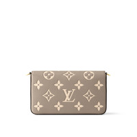 The Félicie Pochette is crafted from supple Monogram Empreinte leather, embossed with Louis Vuitton's iconic Monogram pattern. The bicolor palette brings added refinement to this elegant and versatile design, which features a removable chain, enabling it to be carried on the shoulder or as a clutch, as well as two removable pockets. Detailed Features - Tourterelle Gray / Cream - Monogram Empreinte embossed supple grained cowhide leather - Microfiber lining - Gold-color hardware - Press-stud closure - Large compartment - Inside flat pocket - Removable zipped pocket - Removable flat pocket with 8 card slots - Chain:Removable - Chain drop: 20.9 inches - This reference is either Made in France, Spain, Italy or in the US. Length: 8.3 inches Height: 4.7 inches Width: 1.2 inches