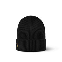 The ribbed LV Spark beanie features a classic construction finished with a polished hardware accent. A turn-up brim enhances the casual aesthetic, while LV Initials in gleaming hardware add a distinguished House detail. This pure cashmere piece is offered in a range of timeless colors for versatile wear. Detailed Features - Black - 100% cashmere - Gold-color hardware - LV Initials Length: 9.4 inches Height: 8.3 inches